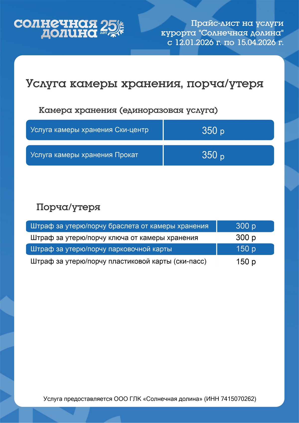 Услуги камеры хранения